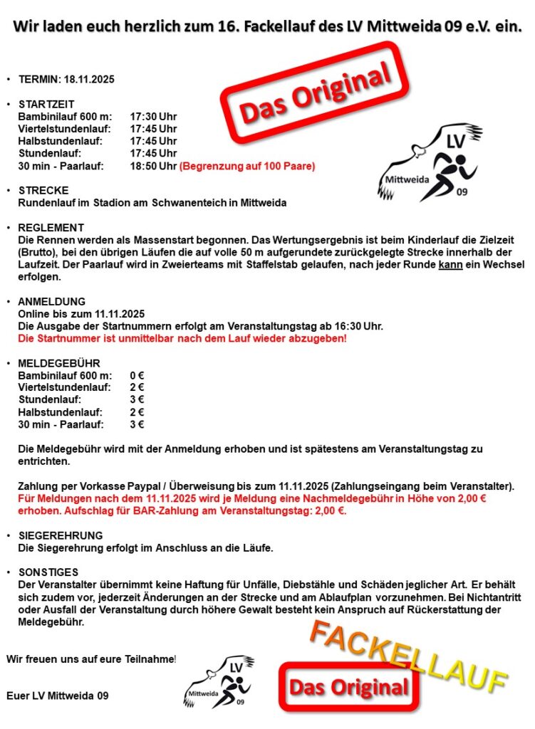 15. Mittweidaer Fackellauf des LV Mittweida 09 – Das Original! | 19.11.2024